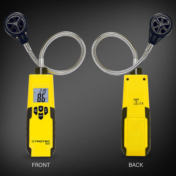BA16-nın çevik şəkildə tənzimlənən və 40 sm uzunluğunda qaz boynu hətta əldə etmək çətin olan yerlərdə və ya uzaqdan hava təchizatı və egzoz deliklərində ölçməyə imkan verir – məsələn, HVAC quraşdırıcıları üçün egzoz barmaqlıqlarını, kanalları və burulğan çıxışlarını ölçmək üçün idealdır.