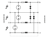 - 3 məlumat və ya siqnal xətləri, 2 naqilli avtobus şəbəkələri üçün təxminən sızma cərəyanı olmayan həddindən artıq gərginlikdən qorunma cihazı