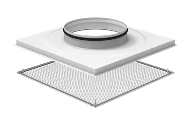 TSF Əsas Diffuzorları Kvadrat ekstraktlı diffuzor bir sıra parametrlərdə tavan montajı üçün uyğundur