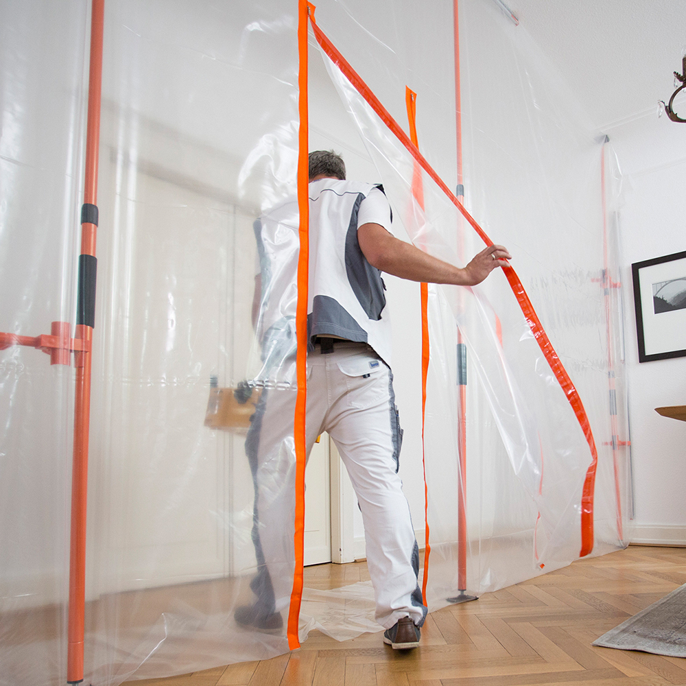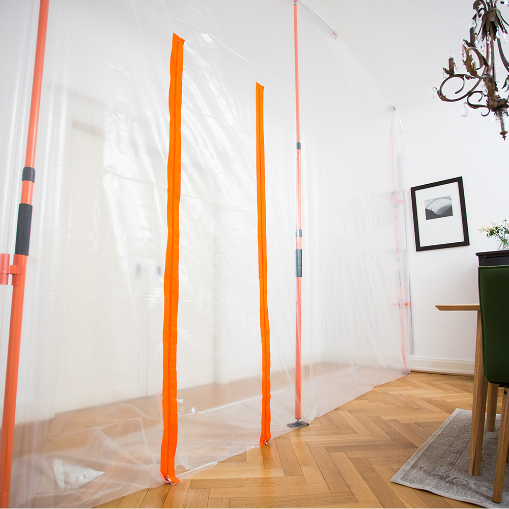 - Self-adhesive zippers: For application on the plastic foil. For easy entry and exit of the construction site. Stick the zipper and cut the film for the passage.