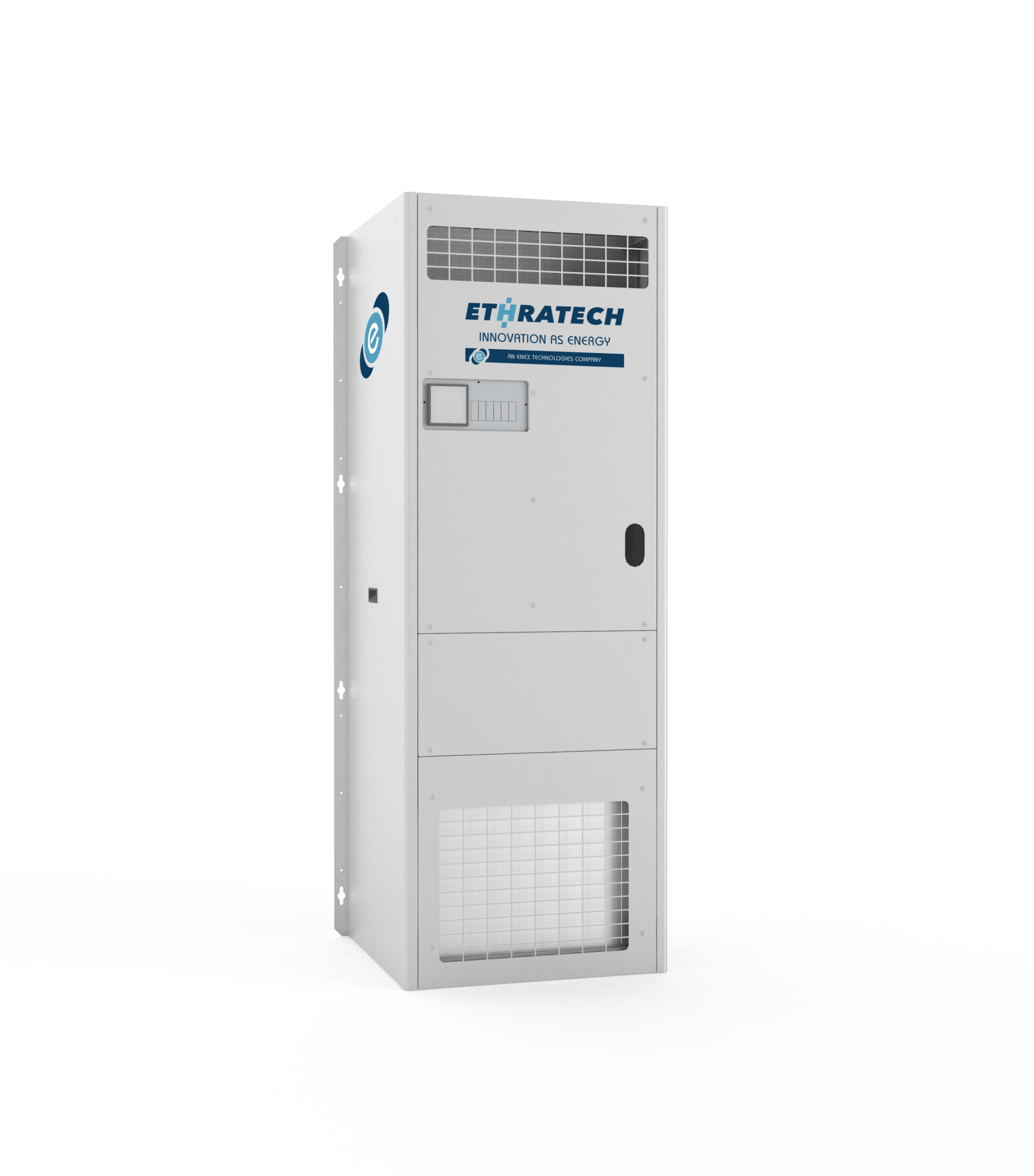Climatiseurs extérieurs monoblocs à condensation par air, idéaux pour les installations en intérieur, les abris pour stations de base radio et les centres de traitement de données. L’air de refroidissement est extrait par le haut et dirigé vers le bas.