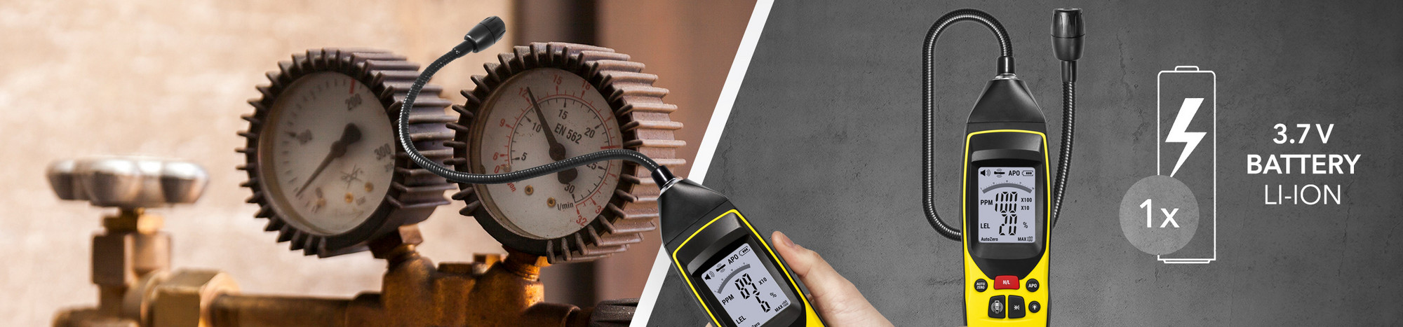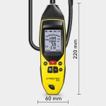 40 սմ (15,75 դյույմ) ճկուն խողովակի զոնդը թույլ է տալիս հայտնաբերել և հայտնաբերել արտահոսքը դժվարամատչելի և նեղ տարածքներում: Գազի դետեկտորը հագեցած է հետին լուսավորված LCD էկրանով, որը թույլ է տալիս ցանկացած պահի չափված ppm արժեքները կարդալ արագ և հեշտությամբ, նույնիսկ անբարենպաստ լույսի պայմաններում: Ավելին, այսպես կոչված Level Lower Explore, որը սահմանում է, այսպես կոչված, Level Lower Explosion: ցուցադրվում է օդը, որտեղ հնարավոր է պայթյուն: