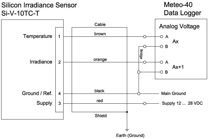 | Output signal irradiance | 0 … 10 V @ 0 … 1500 W/m² | |