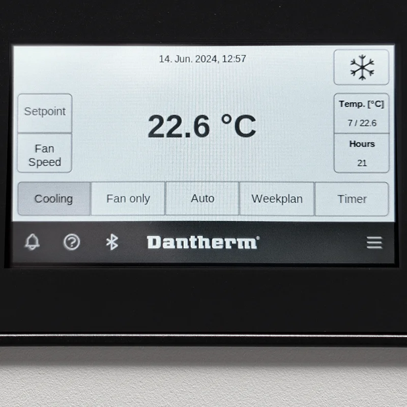 - Indoor unit with step-less variable fan speed and adjustable grille