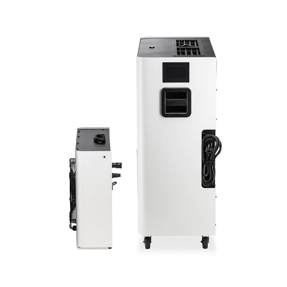 The AC 7000 absorbs the heat into a refrigerant cooling system. From there, the heat is transferred to the self-containing chilled water/glycol system. It is then pumped through to the outdoor unit where the water is cooled and the heat dissipates.