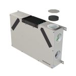Requiring just 200mm installation headroom, it is perfect for installation in suspended ceilings, on (or inside!) walls or closets. The air flows can be electronically swapped, so the same unit can be mounted with inside/outside ducts connected to either the right or left hand side as needed.