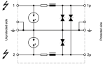 • Nearly leakage current free overvoltage protection device for 2-data or signal lines, 2-wire bus networks