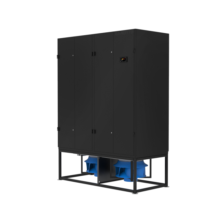 Units consist of two modules: the first housing the heat exchanger, usually placed over the floor, the second where EC inverter fans are fitted. Downflow air supply.
