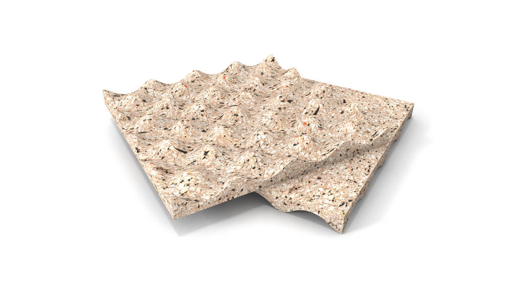 REGUPOL consists of a number of different grained recycled cellular polyurethane-bound rubber granulates glued together with polyurethane glue.