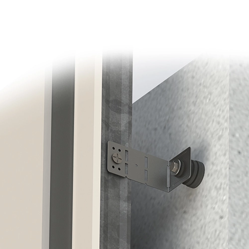 A special rubber vibration isolator support, Vibro-mini, is located outside to absorb mainly compression and tension forces. The pass-through screw is carefully placed in a way that contact with the metal frame is avoided, so that no sound bridge is created.