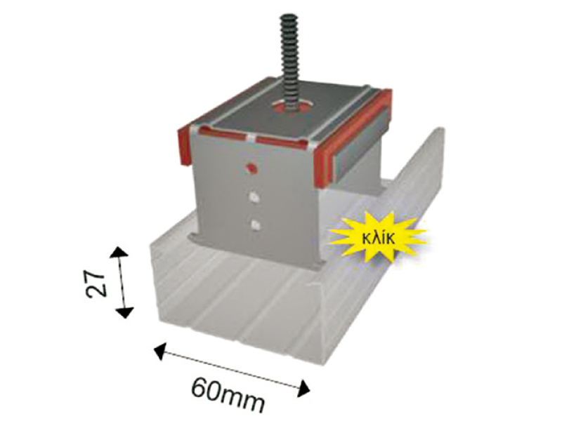 Vibro-QH.F Sound Insulator consists of a specially designed galvanized metal suspension hanger, which has grappling edges for QUICK & EASY connection with the standard ceiling profiles with dimensions 60 x 27 mm (for false ceilings) according to DIN 18182-1.