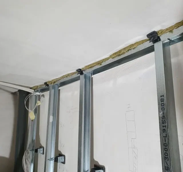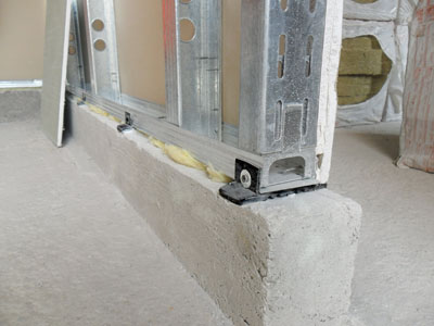 Antivibration supports for gypsumboard partitions. It can be used in recording or rehearsal studio applications, or wherever a floating wall is required.