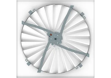 The VVT swirl ceiling diffuser with thermostatic regulation and fixed blades is a well-appointed distribution element for air supply. The front panel is equipped with radially aligned blades of different shapes, which ensure an even distribution of swirl supply air into the working area. On the internal side, the thermostatic regulation of the diffuser ensures supply airflow vertically downwards.