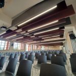 ALPHAcoustic – AB.Ortho – это вертикальные звукопоглощающие потолочные перегородки с прямоугольным сечением (дорический стиль).