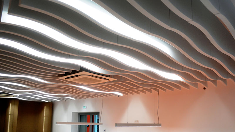 Благодаря двум очень эффективным звукопоглощающим сторонам эти элементы могут достигать высокого звукопоглощения. Они также уменьшают раздражающие множественные отражения шума, улучшая внутреннюю акустику и уменьшая эхо. Они создают лучшую акустическую среду, не нарушая работу системы кондиционирования и освещения.