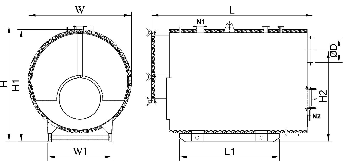 Трехходовой водогрейный котел шотландского типа, работающий на жидком и газовом топливе